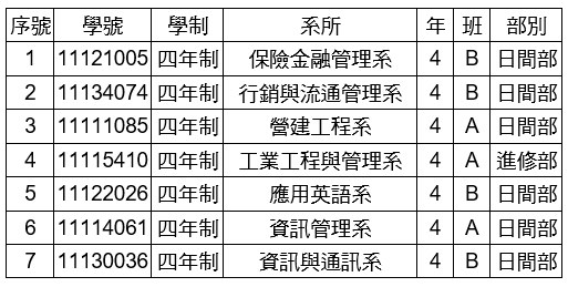 114學年度第1學期日間部與進修部申請提前1學期畢業審查通過名單